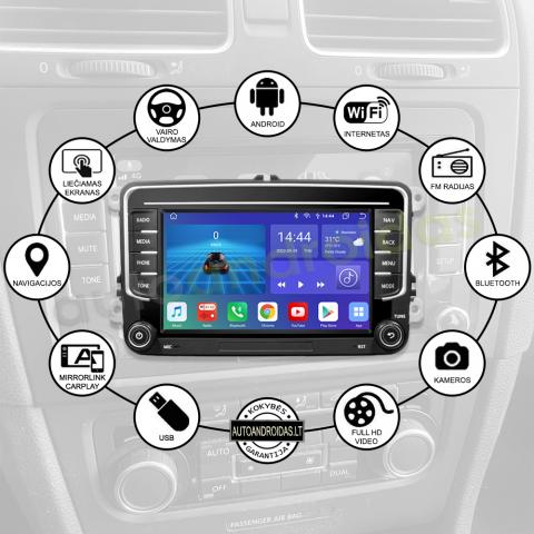 VW, SKODA, SEAT Android multimedija originalios RNS-E imitacijos, su navigacija, 7 colių ekranu, pritaikyta originaliais išmatavimais ir jungtimis VOLKSWAGEN: Golf V (2003-2008); Golf VI (2008-2011); Golf Estate (2009-2012); Golf GTI (2010-2012); Golf Plus, Touran (2003-2013); Passat, Passat Estate, Jetta (2005-2013); Passat Sedan, Jetta GLI, EOS (2006-2013); Passat Wagon, Tiguan, Rabbit (2007-2013); Golf VI, Passat CC, Scirocco (2008-2013); Polo, Polo V 6R, Scirocco E (2009-2013); Amarok, Caddy, Golf Wago