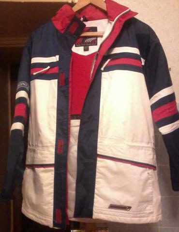 Rašo 36 dydį, tačiau tinka ir M dydžiui. Rankovių ilgis: 57cm, krūtinės apimtis:65cm, visos stiukės ilgis78cm, tinka 170cm ūgiui. Prieš užsitraukiant striukę galima susirišt, nemažai kišenių.