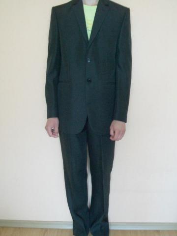 Vyriškas juodas su smulkiais dryžiais kostiumas. Vieną kartą dėvėtas.