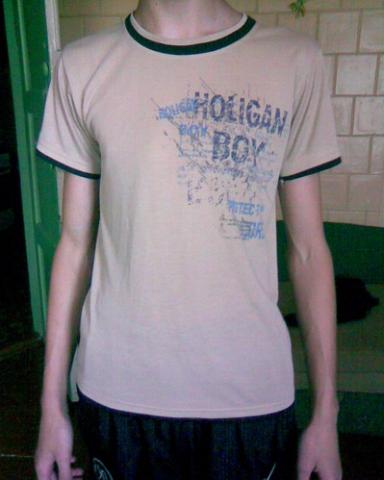 100 % medvilnė. Šviesios smėlio spalvos, priekyje užrašai.