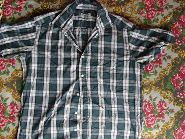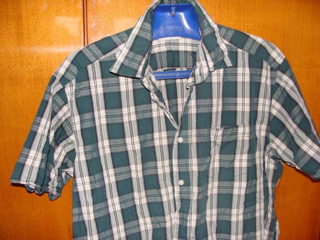Marskiniai trumpom rankovem, medvilne. C&A firmos. Broliui pirkti, siek tiek nesiojo, bet deja neprilipo jam :) Nuotraukoje susiglamze nes neislyginti.
