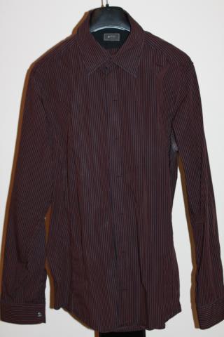 100 % medvilnė, juodai-bordo linijomis, nešioti kelis kartus, geros būklės, rankogaliai susegami sagutėmis.