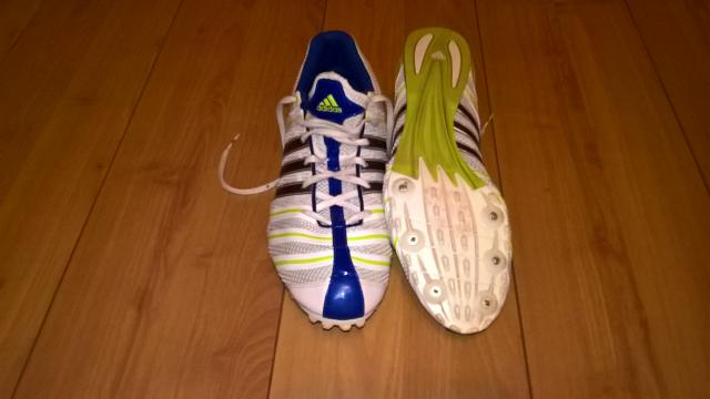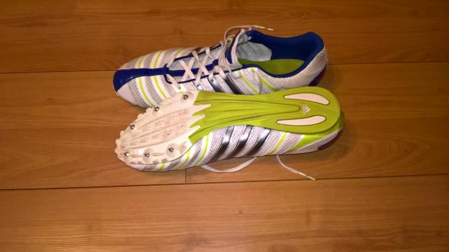 Adidas firminiai vyriški startukai, padai šipuoti, skirti profesionaliam sportui.