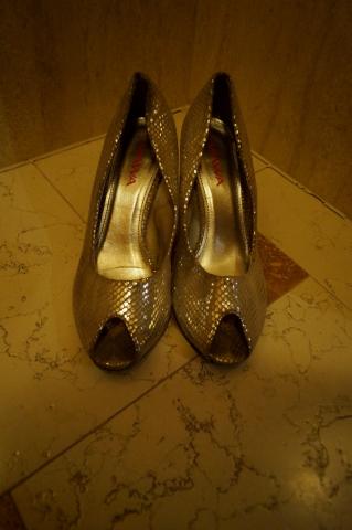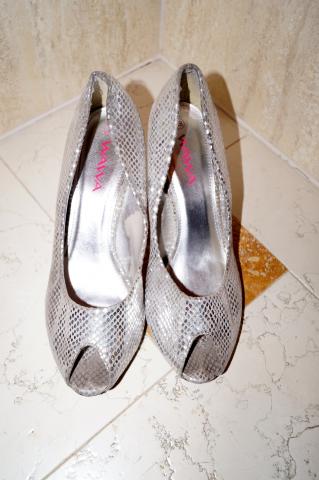 Wawa gyvatės rašto sidabru žėrintys bateliai. Mylėti ir nešioti, tad tikrai neatrodo kaip nauji. Kulniukas pasibraižęs ir vidus pasitrynęs, bet ant kojos dar labai neblogai atrodo. Kulniukas pakaltas metalu, tad ilgaamžis. Labai patogūs. Kulniukas 7 cm, vidpadis 24,5 cm. Rašo 38 dydį, bet aš paprastai nešioju 39, man jie tiko.