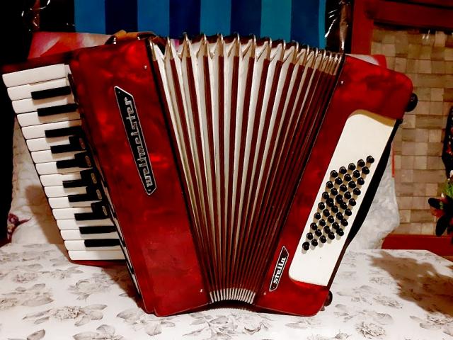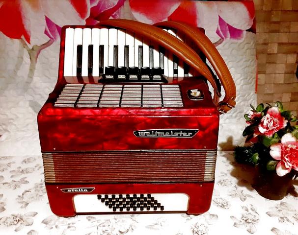 Parduodamas Weltmeister Stella vokiškas akordeonas, 40 bosų, 5 registrų, geros būklės, balsai puikiai derantis, skambus. Kaina 210 Euru. Vilnius, tel.: 8 653 12348