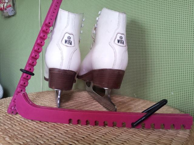 Parduodu nedaug dėvėtas austriškus pačiūžų batus“ Wifa Prima – Set „ su geležtėmis John Wilson firmos pagamintomis Anglijoje . Yra apsaugos. Pačiūžų batai baltos spalvos, pagaminti iš natūralios odos. Bato vidus iš specialios medžiagos, kuri apsaugo kojas nuo traumų. Ortopedinis- odinis padas. Geležčių ašmenys pagamintos naudojant lazerio technologiją pagal aukščiausią anglišką kokybę. Dydis: tinka nuo 36 iki 38 dydžio arba EU 4 LL .