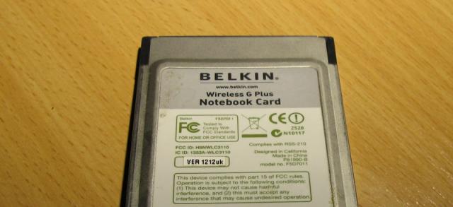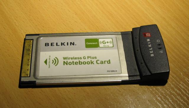 Naudota bevielio tinklo PCMCIA plokštė Belkin Wireless G Plus Notebook Card. Palaiko 802.11b ir IEEE 802.11g tinklus. Daugiau informacijos: http://www.belkin.com/IWCatProductPage.process?Product_Id=439298