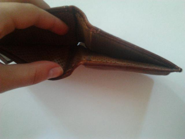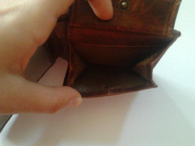 Nedidelė , tamsiai ruda. Yra mažas skyrelis kelioms kortelėms , stalčiukas monetoms ir dar vienas skyrius banknotams. Iš Vokietijos , kelis kartu nešiota.