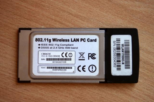 Bevielio tinklo adapteris, wireless LAN PCMCIA adapter 54Mbps 802.11 G. Kompakto su draiveriais neturiu.