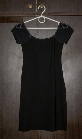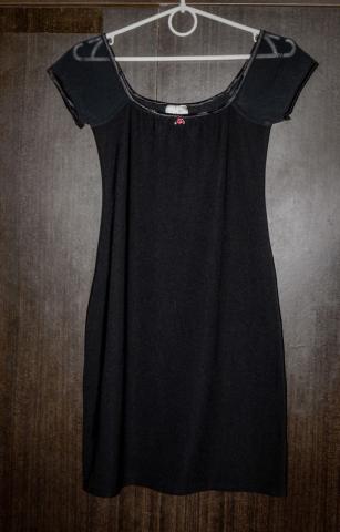Parduodama arba mainoma trumputė dailiai priglundanti juoda suknelė. Rankovės permatomos, medžiaga maloni, viršus papuoštas minimalistine rožyte. Dėvėta vieną kartą, be defektų. Ilgis - 78 cm; Krūtinė - 33x2 cm; Liemuo - 33x2 cm; Klubai - 44x2 cm.