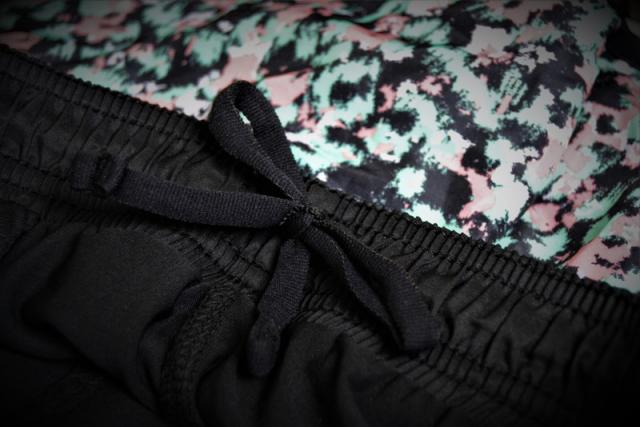 Parduodami sportiniai šortukai, susidedantys iš dviejų dalių: apatinės aptempiančios ir viršutinės laisvos. Apatinė dalis yra ilgesnė už viršutinę, bet turbūt apsimovus šortus ji apsitemps ir susilygins su viršutine dalimi. Viršutinės dalies ilgis - 28 cm; Apatinės dalies ilgis - 30 cm; Juosmuo - 34x2 cm; Viršutinės dalies klešnė - ~31 cm; Apatinės dalies klešnė - 20 cm, bet dar šiek tiek tempiasi.