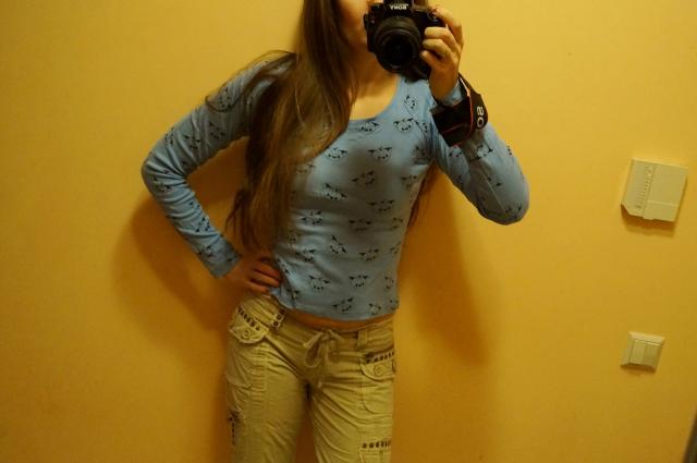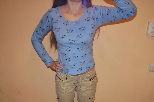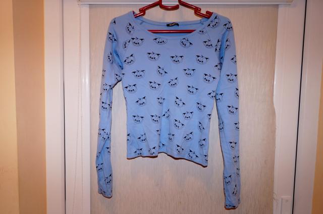 Medvilninė miela palaidinė su linksmais katinukais. Labai mažai nešiota. Aplikacijos ištempus patrūkinėjusios. Dydžio ant jos nerašo. Tiks XS, S, S/M, M... Išmatavimai: Ilgis 52 cm, rankovė nuo pažasties 54 cm, tarp pažastų 40 cm, tempiasi.