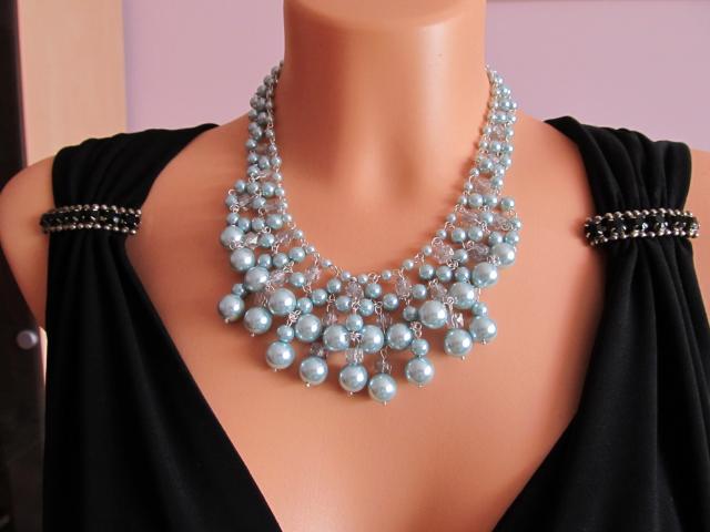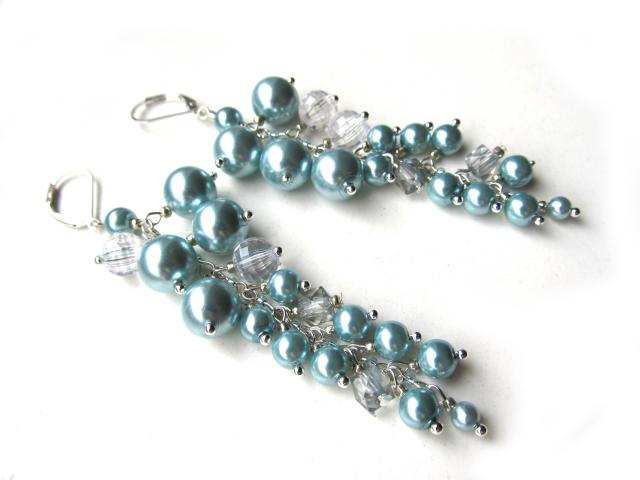 Žydrų perliukų auskarai,,kekės"