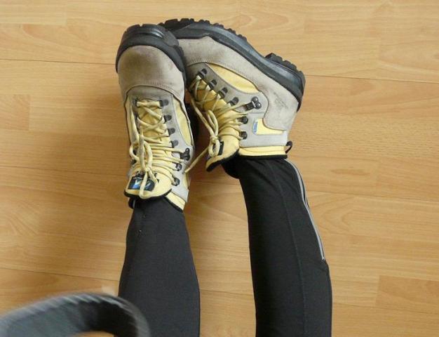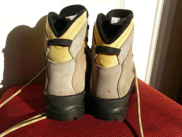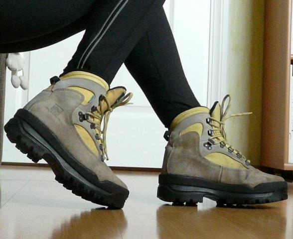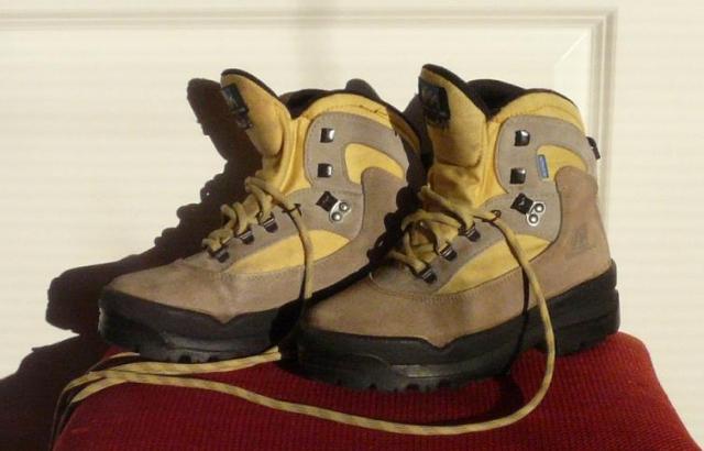 Trekingo batai. Nedaug dėvėjau, nes man truputėlį per maži. Niekur nesuplyšę ir neatsiklijavę, vidus puikiai išsilaikęs, išorėje yra šiek tiek patamsėjimų ir dėmelių, bet iš esmės atrodo gerai. Padas tvirtas ir storas, auliukai pakankamai aukšti, dengia čiurnas, todėl tinka žygiuoti uolėtomis akmenuotomis vietomis. Viduje yra membrana (SympaTex), sauganti nuo drėgmės.