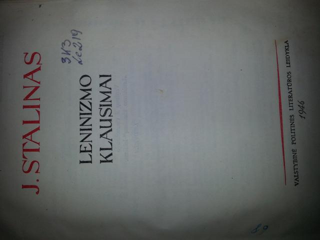 Ypac reta knyga, J.Stalinas, Leninizmo klausimai. 1946m