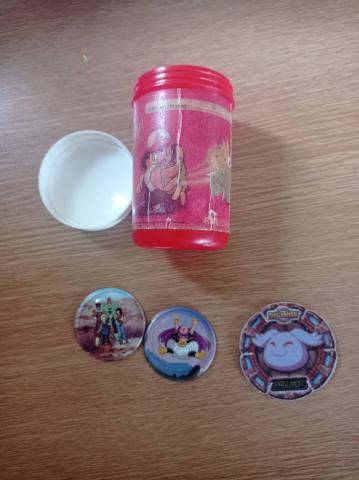 Cheetos plastmasiniai tazai - puikios būklės Madagaskaro metaliniai žetonai / kepsai Keli dragon ball z metaliniai kepsai + originali plastmasinė dėžutė Digimon kepsas Yu - gi - oh metaliniai kepsai su dviem originaliom plastmasinėm dėžutėm - puikiai tinka laikymui ar kolekcijai