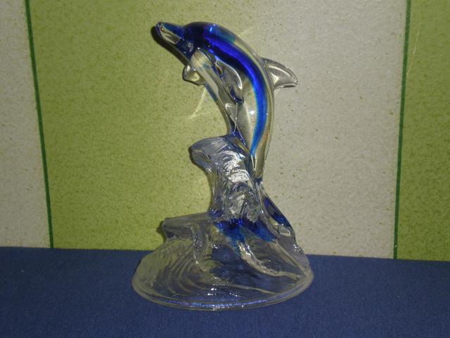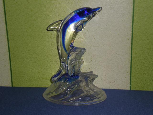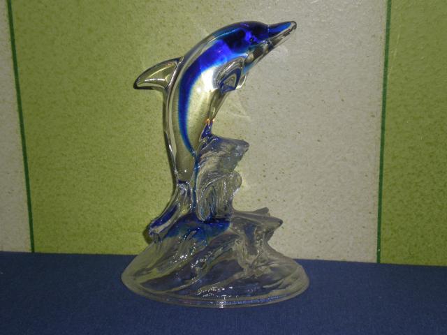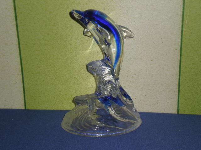 Zaislas vaikams stiklinis permatomas delfinas skriejantis tarp bangu