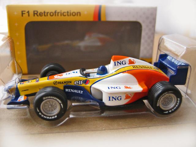 Renault ING F1 Team, Alonso Retrofriction (pullback) Toy, oficialus Renault linksmas zaisliukas- visi logo, visi spalvos kaip tikro bolido, pavara- uztraukiamas atgal, paleidus- nulekia, dydis apie 8 cm., naujas, dezuteje, vaikaims virs 3 metu. Smagi dovana! Yra ne vienas vnt.