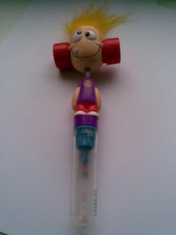 Sunku paaiskint kas tai:D Realiai - tai nerealus zaisliukas (buvo kartu su saldainiu (kurio nebera)) Su plaukais kurie lb fainai juda, o judinant pati zaisliuka jis skleidzia juokinga garsa :D