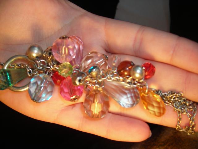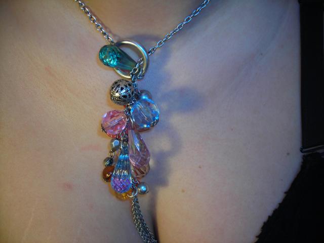 Labai fainas pakabukas- spalvotas,tad galima derinti prie daugybės spalvų.Viena maža akutė iškritusi,tačiau kas nežinos,tikrai nepastebės :)Grandinėlė reguliuojasi.Pirkta iš New Yorker