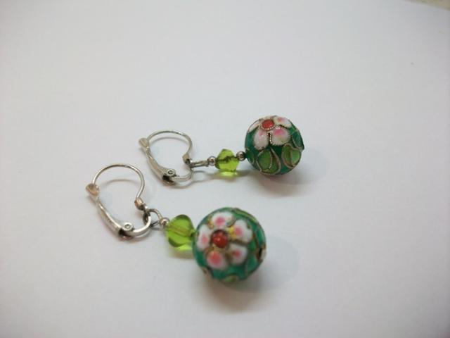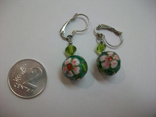 Dailūs, gražūs žalsvi auskarai su gėlytėmis.