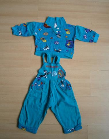 Labai mažai dėvėtas komplektukas 68cm. vaikui. Kelnių petnešėlių ilgis reguliuojamas.