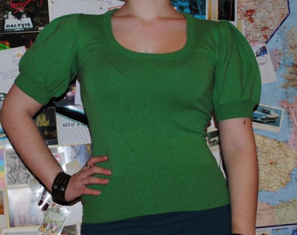 žalias vintage megztukas pūstom rankovėm (S/M)