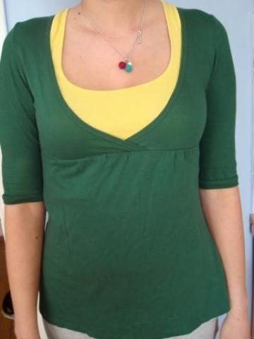 bershka M. medvilnine ir maloni. rankoves 3/4 kzkas tokio.. gili iskirpte, todel geltona apacioj devejau. mainau tik zalia, geltona liks namie
