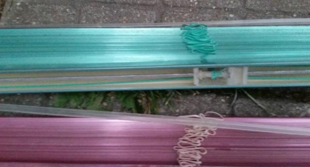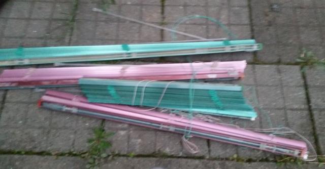 zalios ir ruzavos zaliuzes , nuimtos nuo plastikiniu langu