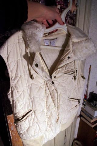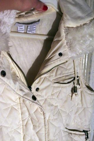 prieš šimtą metų pirkau zaroj, rašo dydį L, bet nešioju xs-s ir man tinka kuo puikiausiai. Dygsniuota žvaigždučių forma, jauki, gana šilta, su kailiuku ant kapišono(nenusisega). Realiai ne labai balta, vos vos kreminio, gražaus atspalvio (jei ką domina liemenės turiu dar vieną su nusegamu kapišonu, smėlinės spalvos Fishbone firmos, dydis tas pats, rašykit. Kaina ta pati)