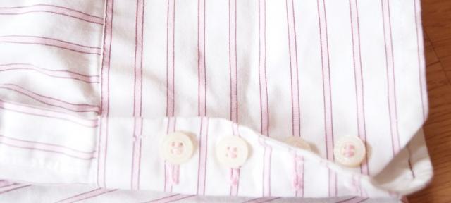 Balti su rožiniais dryžiais, Rankovėse irgi yra daug sagučių tai galima nešioti užsegus arba dailiai atlenkus M