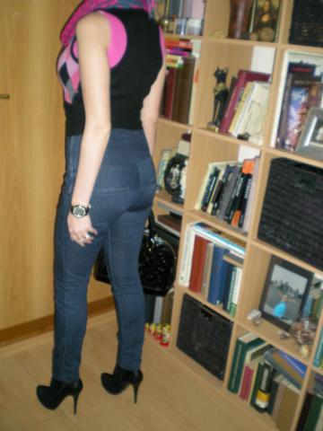 Zara aukstinto liemens, tamsiai melyni siaurejantys dzinsai. Parasytas dydis M. Labai tamprus. Ilgis wisu dzinsu 100cm, ilgis klesnes nuo klyno 74cm, liemuo 65-68cm. Kaina 100lt.