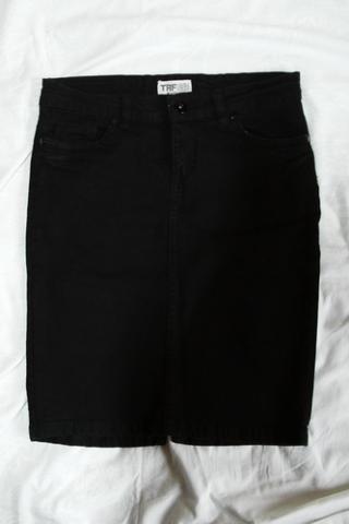 Visiškai nenešiotas ZARA džinsinis juodas pieštuko formos sijonas. Liemuo nepaaukštintas. Dydis 38, bet tinka ir nešiojančioms 36. Sudėtyje yra elastano, todėl gražiai apglunda. Gale yra skeltukas;)