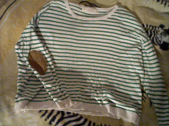 Žaliai baltai dryžuota , su lopais (rudais) ant alkūnių. Kelis kart užsidėta.