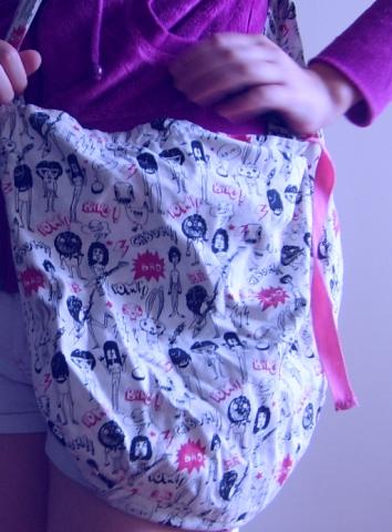 medžiaginė, su juodais ir rūžavais paveiksliukais