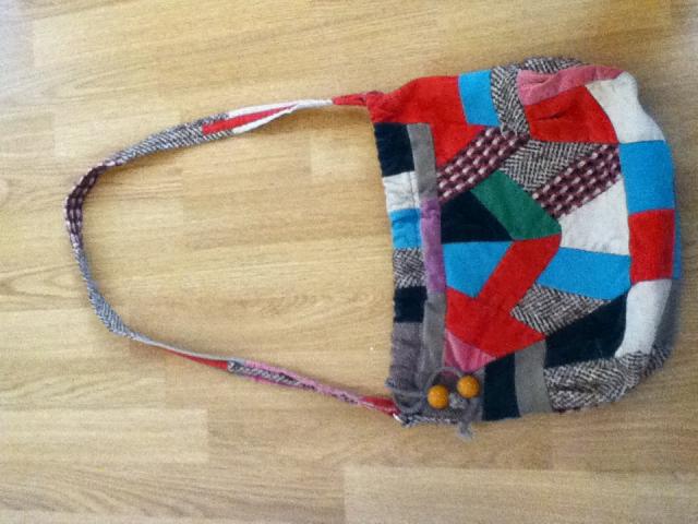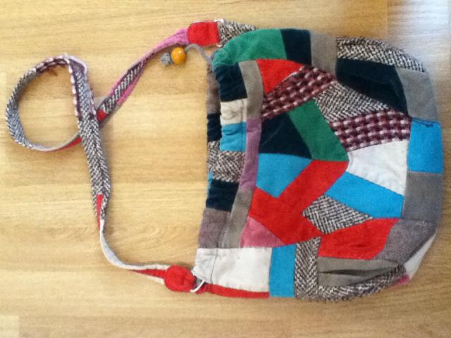 šviesiai rudas pamušalas, dvi mažos vidines kišenytės ir viena užsegama, jos užtrauktukas sugedęs. Kai kur nežymiai paspurę siūlai.