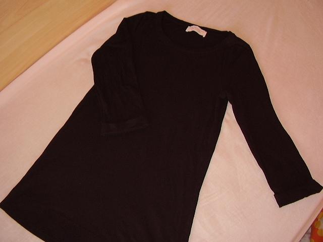 Trikotažinė, patogi, tinkantis tiek laisvalaikiui, tiek kasdienai suknelė. Puikiai atrodo su diržu ant liemens. Tinka ir su pėdkelnėm ir su timpėm ir kelnėm.dydis s/m. Sodrios juodos spalvos