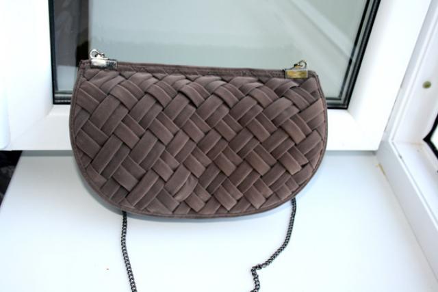 švelnaus zomšo, elegantiška tašytė. praktiškai nauja. galima nešioti per petį, galima kaip delninukę;] kainavo 179lt
