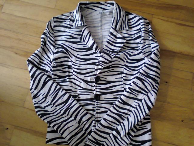 Naujas zebro rašto moteriškas švarkelis. Dydis L(40). Ryškus, spalvos nenublukusios. Be defektų. Nešiojau tik kelis kartus, bet jis man buvo per didelis. Nepaisant to tikrai radau kur jį priderinti ir atrodžiau puikiai. Dėl kainos galima derėtis.:)