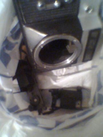 Foto aparatas yra išardytas, nėra objektyvo.