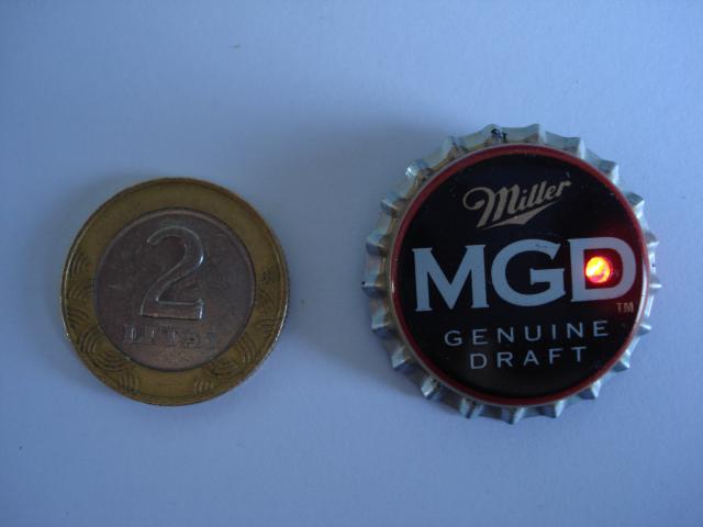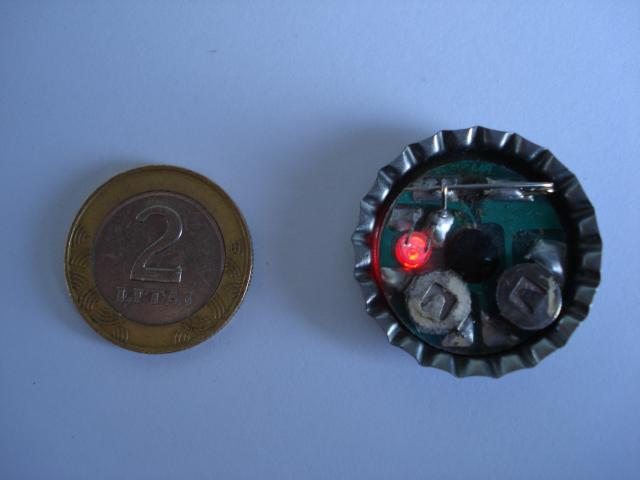 Prisegamas, alaus kamtukas - zenkliukas, su mirksinciu raudonos sviesos diodu. Sviesele galima ijungti arba atjungti.