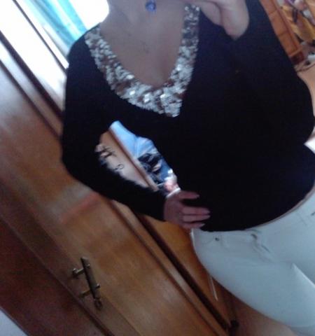 Si palaidine buvo triko tipo, nukirpau ir tapo paprasta palaidine, taciau reiketu dar pasitrumpint ir graziau pasitvarkyti apacia, arba deveti prie sijonuko ar kelniu aukstintu liemeniu. Labai graziai zeri akutes ties krutine, puosniai atrodo.