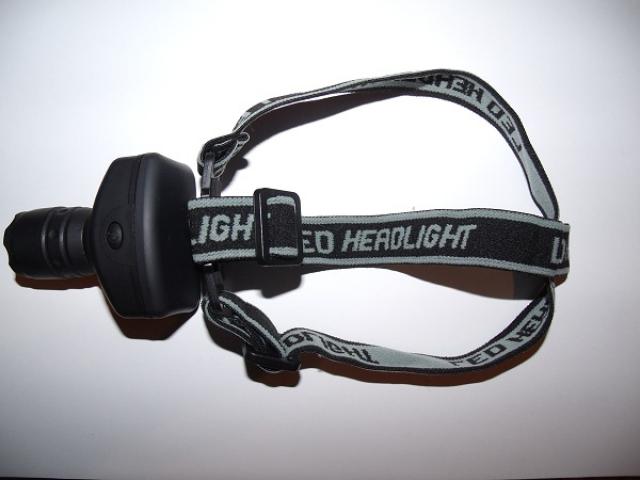 Visiskai noujas Zibintuvelis ant galvos dedasi 3 AAA baterijas.