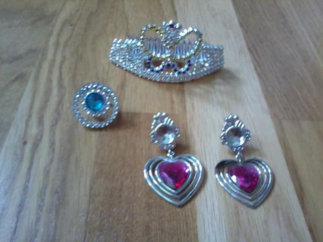 1. Auskarai 3 Lt jie neprasiverusiams 2. Ziedas 1Lt 3. karuna 3 Lt ji kaip sukeles isideda i plaukus.