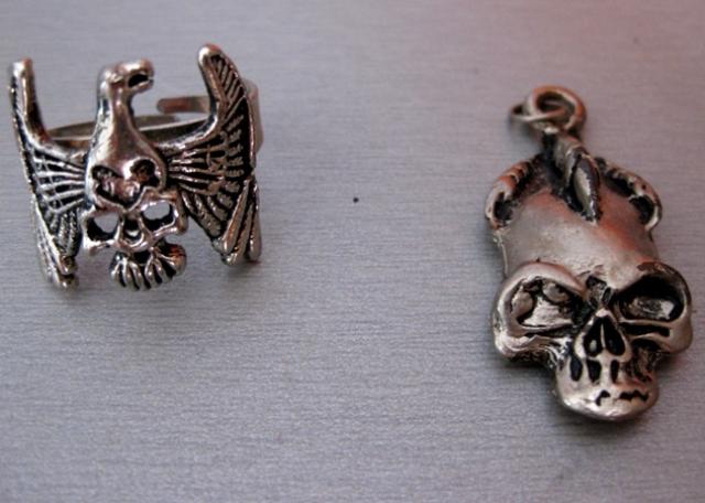 Metalo spalvos ziedas ir pakabukas