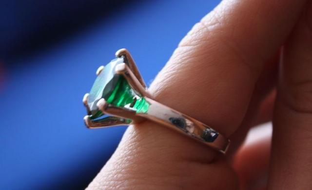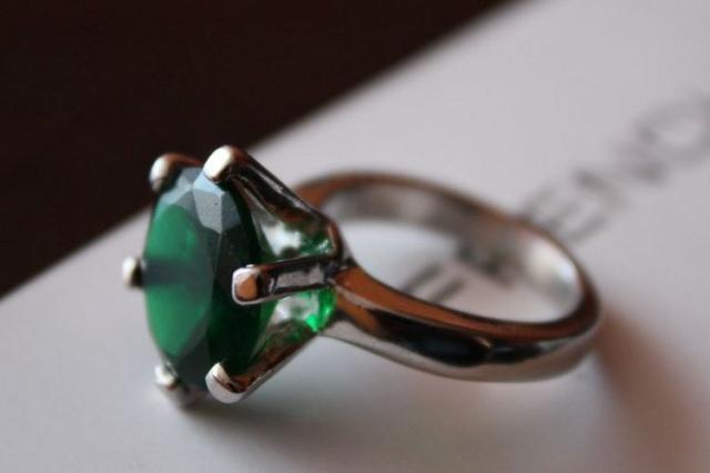 Paprastas metalinis ziedas su zaliu akmeneliu ;)