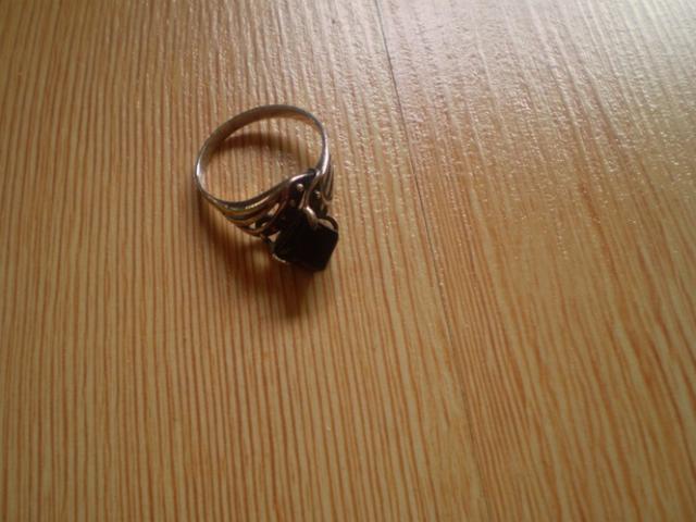 sidabrinis, su dideliu juodu akmenėliu/kubeliu. brangus man, tik deja netinka..