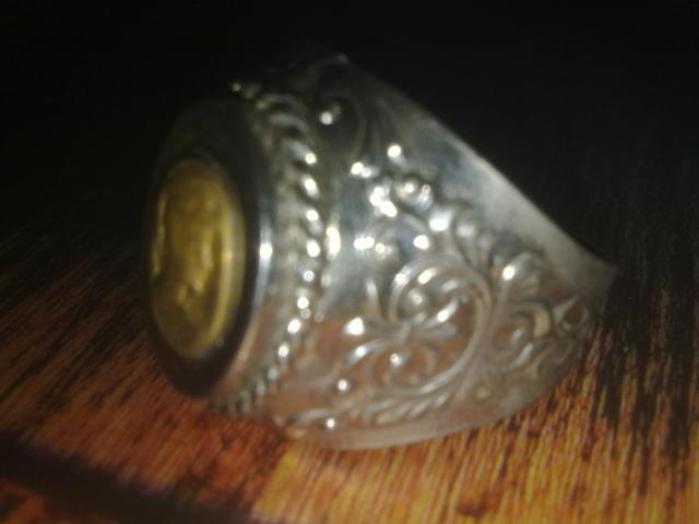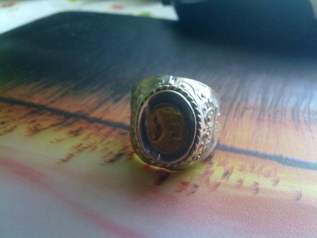 ko gero kaliniu darbo , paprasto metalo ziedas, viduri turbut zalvaris moteris kazkokia... islietas is dvieju formu.... kiek atsimenu tai jis labai senas dar pries 1960