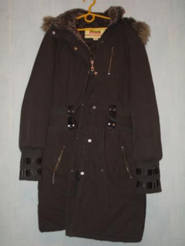 Šiltas žieminis paltas, kailinis kapišonas, jokių defektų