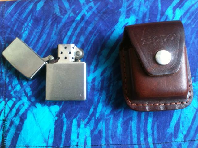 Geros būklės žiebtuvėlis, dega ryškia liepsna. Bonusas - odinis dėklas prie diržo. Abu daiktai yra 'original', made in U.S.A.